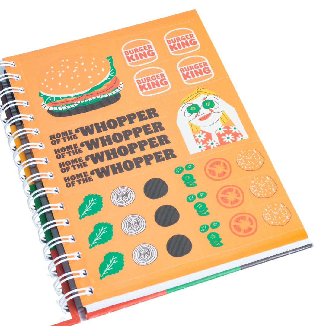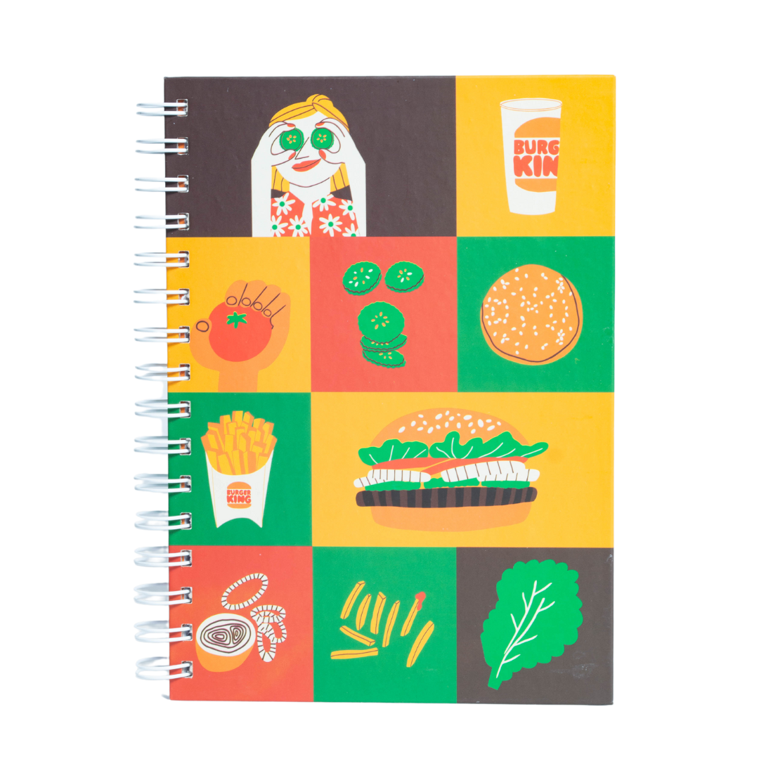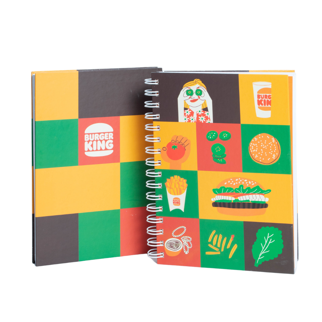 Cuaderno A5 anillado tapa dura. Tapa y contratapa personalizada con diseño a elección. Hojas interiores con logo de la empresa. Puede incluir stickers y/o páginas internas con información. Consultanos para conocer todas las opciones disponibles.